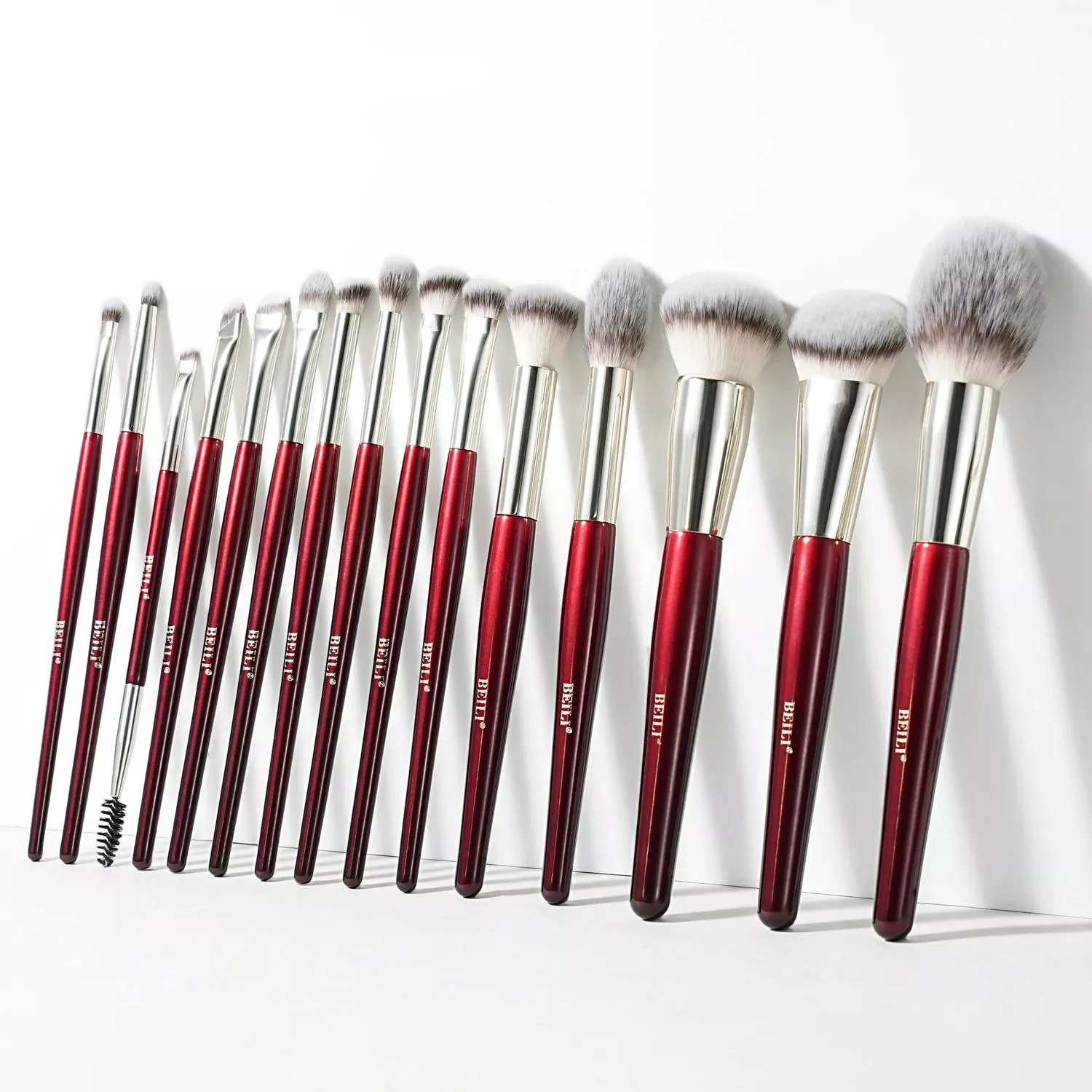 • Eyeshadow, blending, eyeliner, and eyebrow brushes for defined eye looks