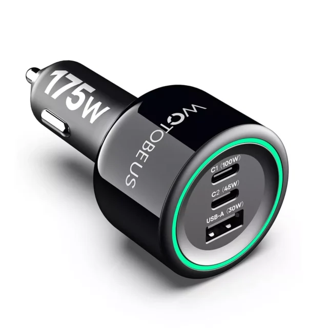 Say goodbye to slow charging and tangled adapters. This 175W 3-Port USB-C Car Charger is your all-in-one solution to power up everything from laptops to smartphones—fast. Designed with advanced fast charging protocols, it delivers blazing-speed power through two USB-C ports and one USB-A port. Whether you’re commuting, road-tripping, or driving between meetings, this compact powerhouse keeps your devices fully charged and ready.
