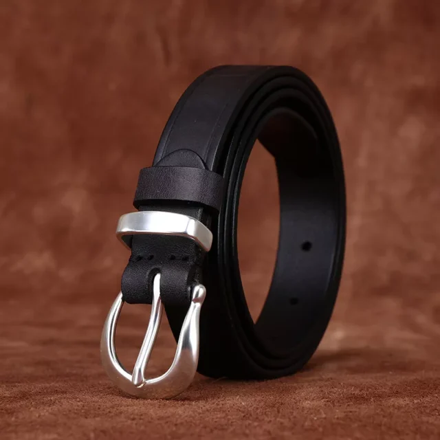Crafted from top-layer cowhide, this belt offers durability alongside a soft, supple feel that only improves with time. The silver-plated copper buckle not only shines with elegance but also ensures lasting strength and reliability. At just under an inch wide, it’s perfect for accentuating your waist without overwhelming your look.
