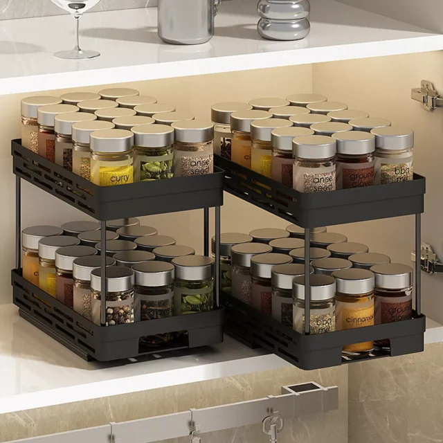 This 2-tier pull-out storage rack is perfect for anyone wanting to bring order to their kitchen. Whether you have limited cabinet space or just want a smarter way to organize spices and jars, this rack adapts to your needs. It’s suitable for home cooks, busy families, and anyone who appreciates a tidy, efficient kitchen.