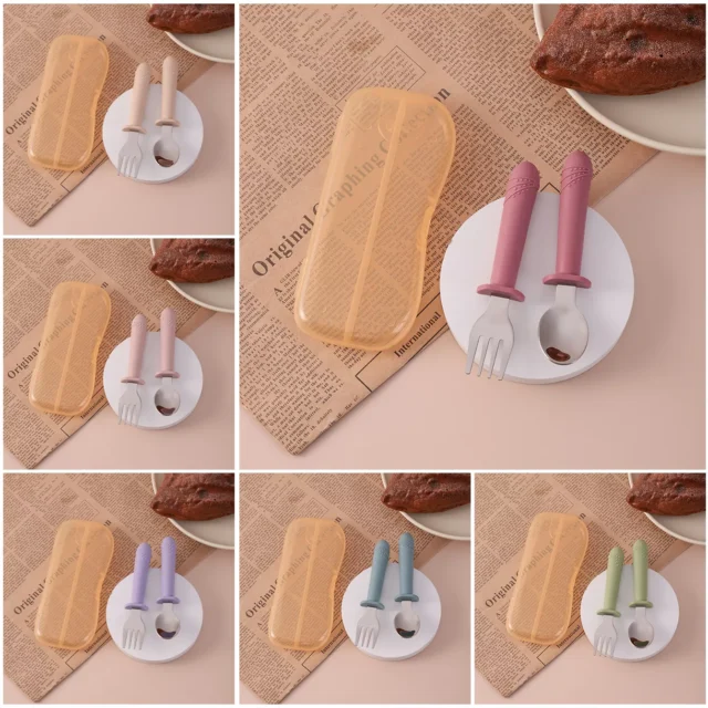 This utensil set is crafted from high-quality stainless steel that’s durable and resistant to bending, rusting, or breaking. The silicone handle is BPA-free and soft to the touch, making it gentle on tiny hands and encouraging confident self-feeding. With a solid pattern and sleek, modern look, this baby cutlery set is not only practical but also visually appealing for any baby mealtime setup.