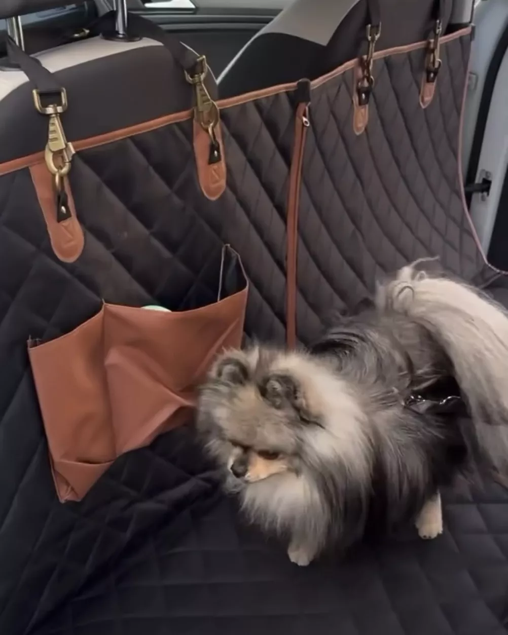 This product exceeded my expectations! It fit perfectly in the back of my Ford Escape, buckled nicely around each headrest, and doesn’t slip and slide when my doggo is hanging out on it. Offers good protection for my car seats and looks sleek too. Highly recommend!