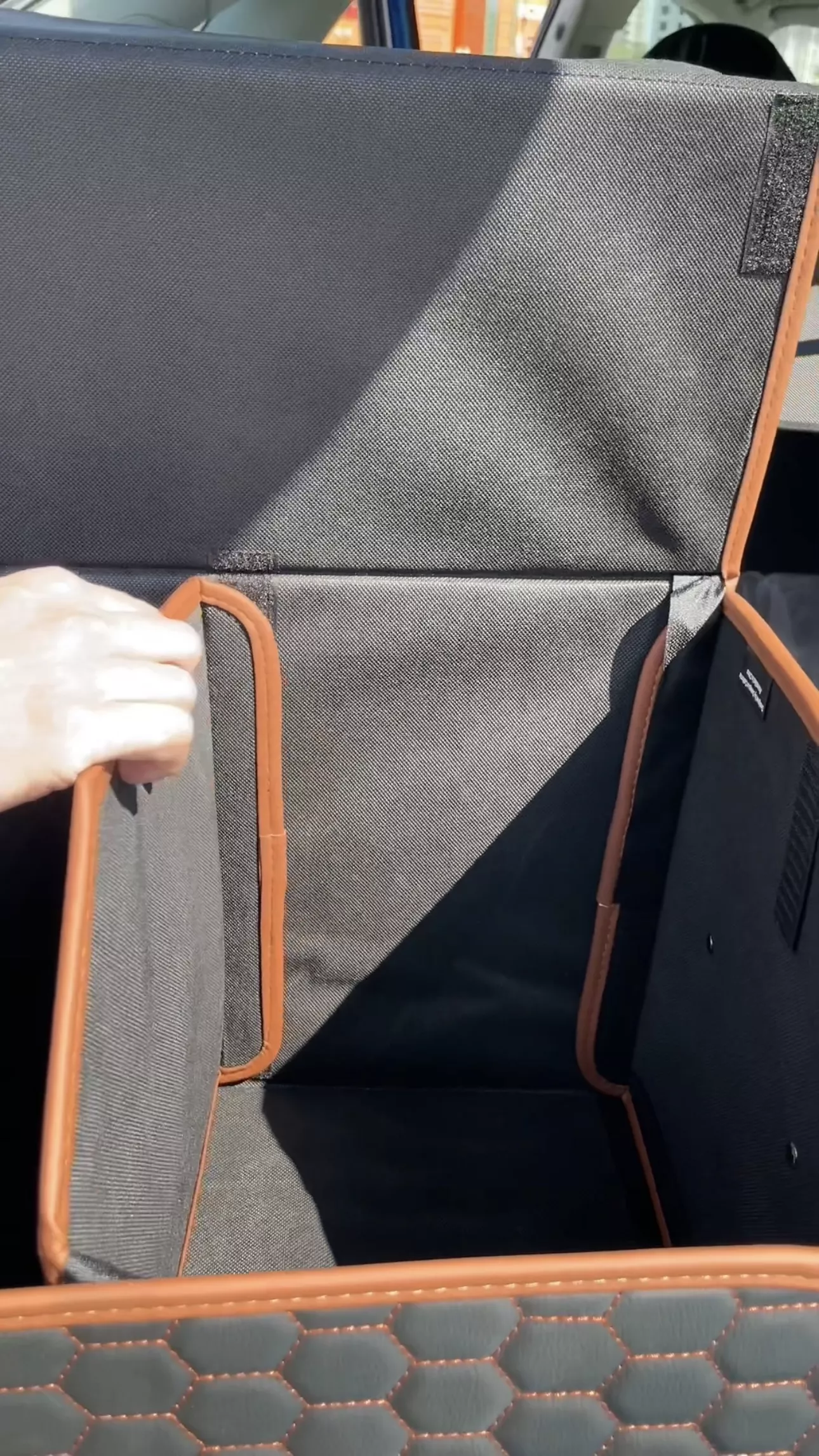 I’m so glad I bought this trunk organizer. My car used to be a mess, with items scattered all over the trunk. This organizer has changed that completely. It’s sturdy, with lots of compartments for different items, and the handles make it easy to carry. I love that it’s collapsible, so I can fold it up when I need more space. The velcro strips on the bottom keep it from moving around while I’m driving. It’s perfect for groceries, sports gear, and emergency supplies. It’s made my car much neater and more functional. Highly recommend this to anyone with a messy trunk.