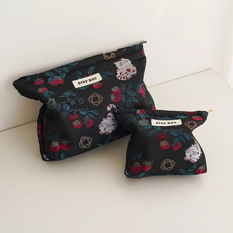 This bag is more than just a storage solution—it’s a statement of style and convenience. Its durable polyester construction ensures it withstands everyday use, while the lightweight design makes it easy to carry anywhere. The embroidered cat and cherry add a touch of charm, making it an accessory you’ll enjoy showing off. Use it daily to keep your lipsticks, brushes, or small accessories organized, or take it along on trips to maintain effortless organization on the go.