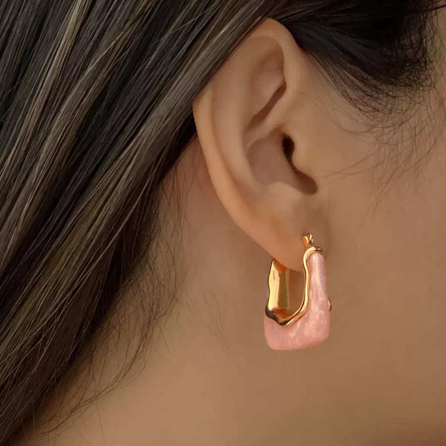 Introducing our latest collection of stud earrings, a perfect blend of classic charm and contemporary flair. These Chic Geometric Resin Stud Earrings are designed to captivate and charm, making them an essential accessory for any modern woman. The unique green and pink transparent resin combined with a geometric, irregular design creates a striking look that is both sophisticated and playful. Ideal for various occasions, these earrings add a touch of elegance to any outfit.