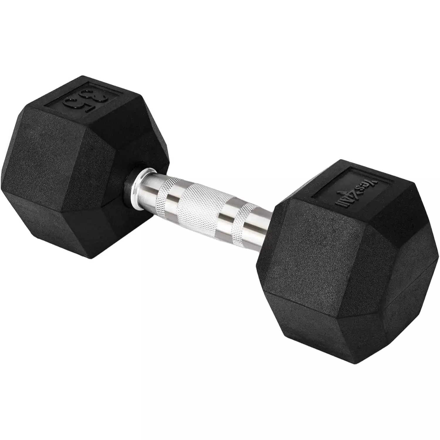 Built with a solid cast iron core and encased in thick, high-quality rubber, this dumbbell is made to last. The rubber coating not only protects your floors but also reduces noise, creating a quieter workout environment. It’s designed to withstand repeated use without wearing down, ensuring strength training that goes the distance.