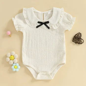Newborn Baby Girl Summer Romper with Doll Collar – Solid Color Jumpsuit