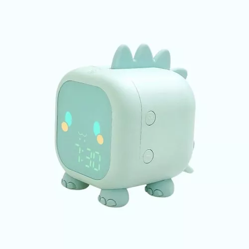 this dinosaur alarm clock is amazing. my child adores the cute design and it has quickly become a favorite in their room. the voice control feature is easy to use and adds a fun element to setting the alarm. the night light is soothing and provides a nice, soft glow that helps my child feel safe at night. the alarm is effective but not too loud, waking my child gently. the clock is also very well-made and durable, so i know it will last a long time. it has made our mornings much smoother and more enjoyable. highly recommend this clock to other parents.