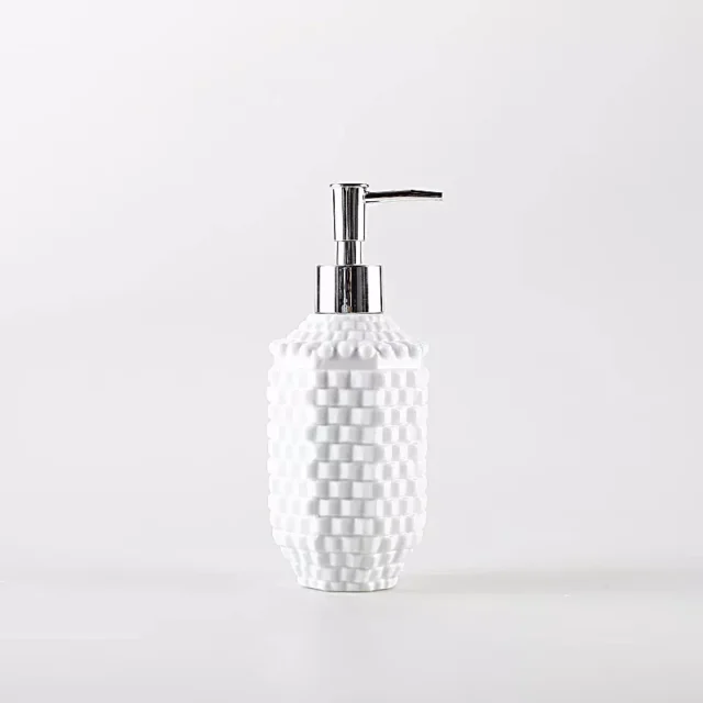 This dispenser is thoughtfully crafted for both form and function. With its durable ceramic body and textured rhombic surface, it offers a comfortable grip while adding a visual accent to your space. Designed with a press-style pump, it delivers just the right amount of liquid each time—perfect for your shower or sink area.