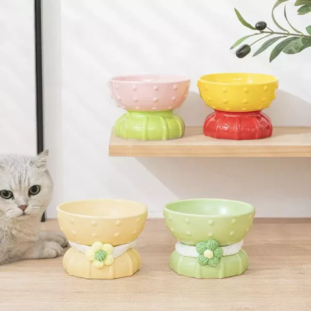 Elevated Cactus Ceramic Cat Bowl – Cute Pet Feeder for Food & Water