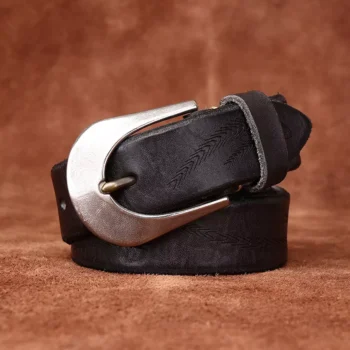 Men’s 3.8CM Thick Genuine Cowhide Leather Belt with Classic Needle Buckle