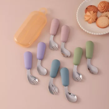 2PCS Baby Self Feeding Spoon & Fork Set – Silicone Grip, BPA-Free Flatware