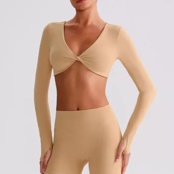 Women’s Long Sleeve V-Neck Yoga Top – Loose Fit Workout Shirt