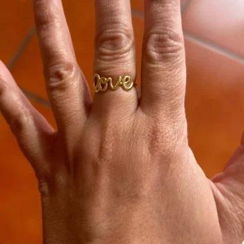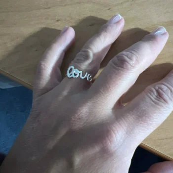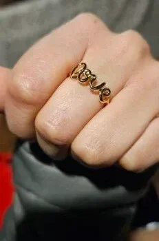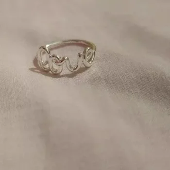 This Love ring is very pretty and delicate. I'm quite satisfied with my purchase; it's exactly what I anticipated and more.