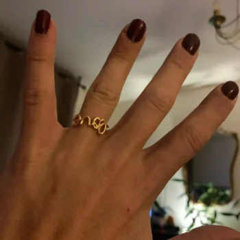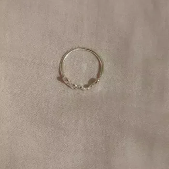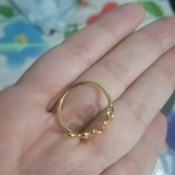 This ring is the ideal size—delicately thin and small. It boasts great quality with metal that doesn't cause skin discoloration, a shine that doesn't lose its luster, and remarkable resistance to bending despite its delicate nature. It's simply stunning. I love it so much that I'm considering ordering another one as a backup in case I ever misplace this one.