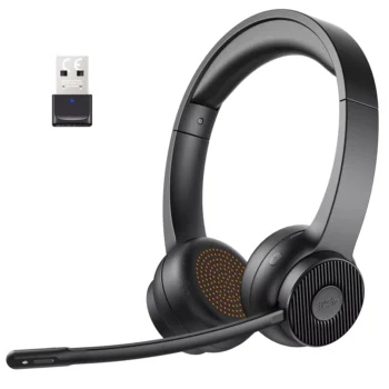 Wireless Office Headset with Noise Cancelling Mic, 35H Talk Time, USB Dongle