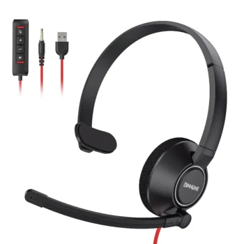 USB Office Headset with Mic, ENC Noise Cancelling, Over-Ear, Busy Light