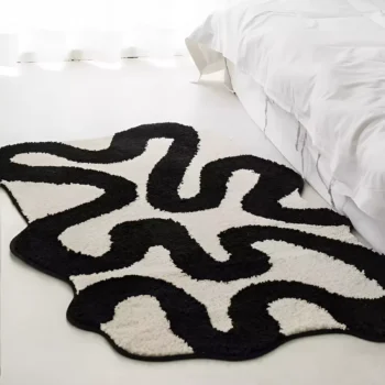 Modern Irregular Black and White Tufted Rug – Soft Anti-Slip Geometric Carpet