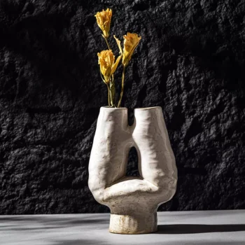 Modern Nordic Irregular Ceramic Vase – Pampas Grass Table Decor