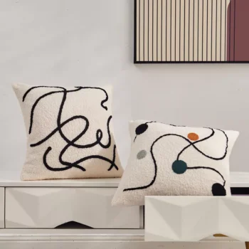 Plush Geometric Embroidered Cushion Cover – Nordic Modern Decorative Pillowcase