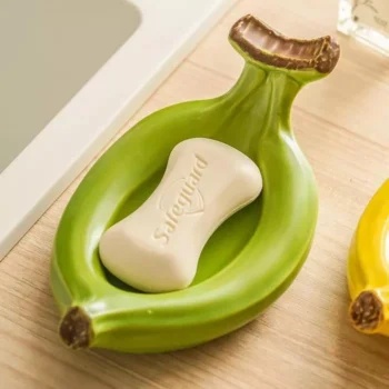 Banana Shaped Ceramic Soap Dish for Bathroom Decor & Soap Storage