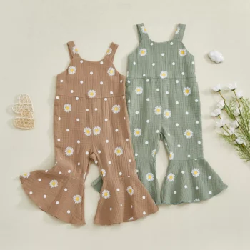 Baby Girl Sleeveless Daisy Jumpsuit with Flared Legs