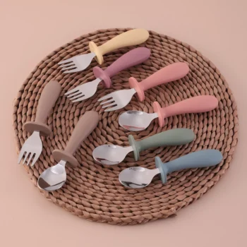 6PCS Silicone & Stainless Steel Baby Cutlery Set