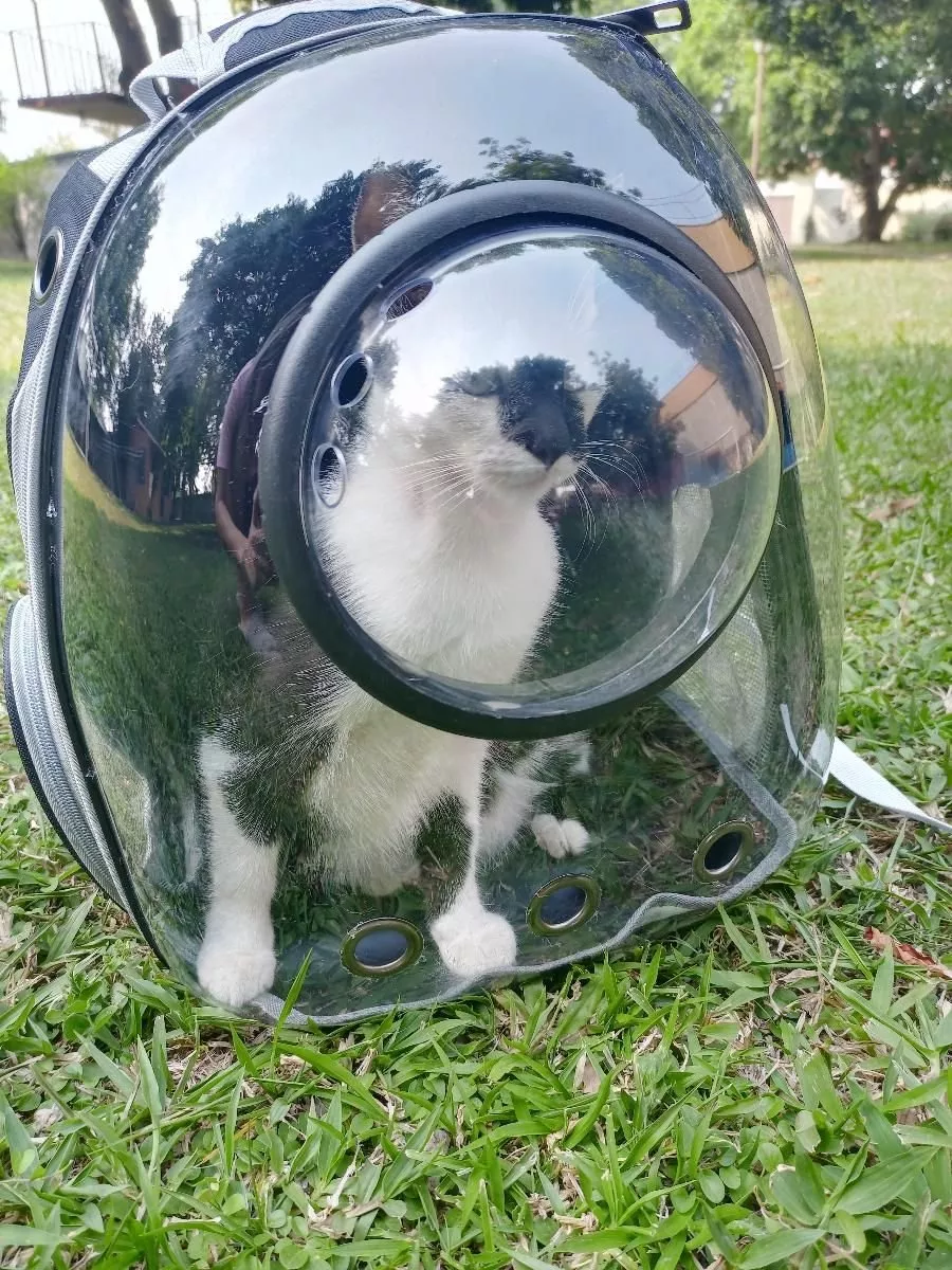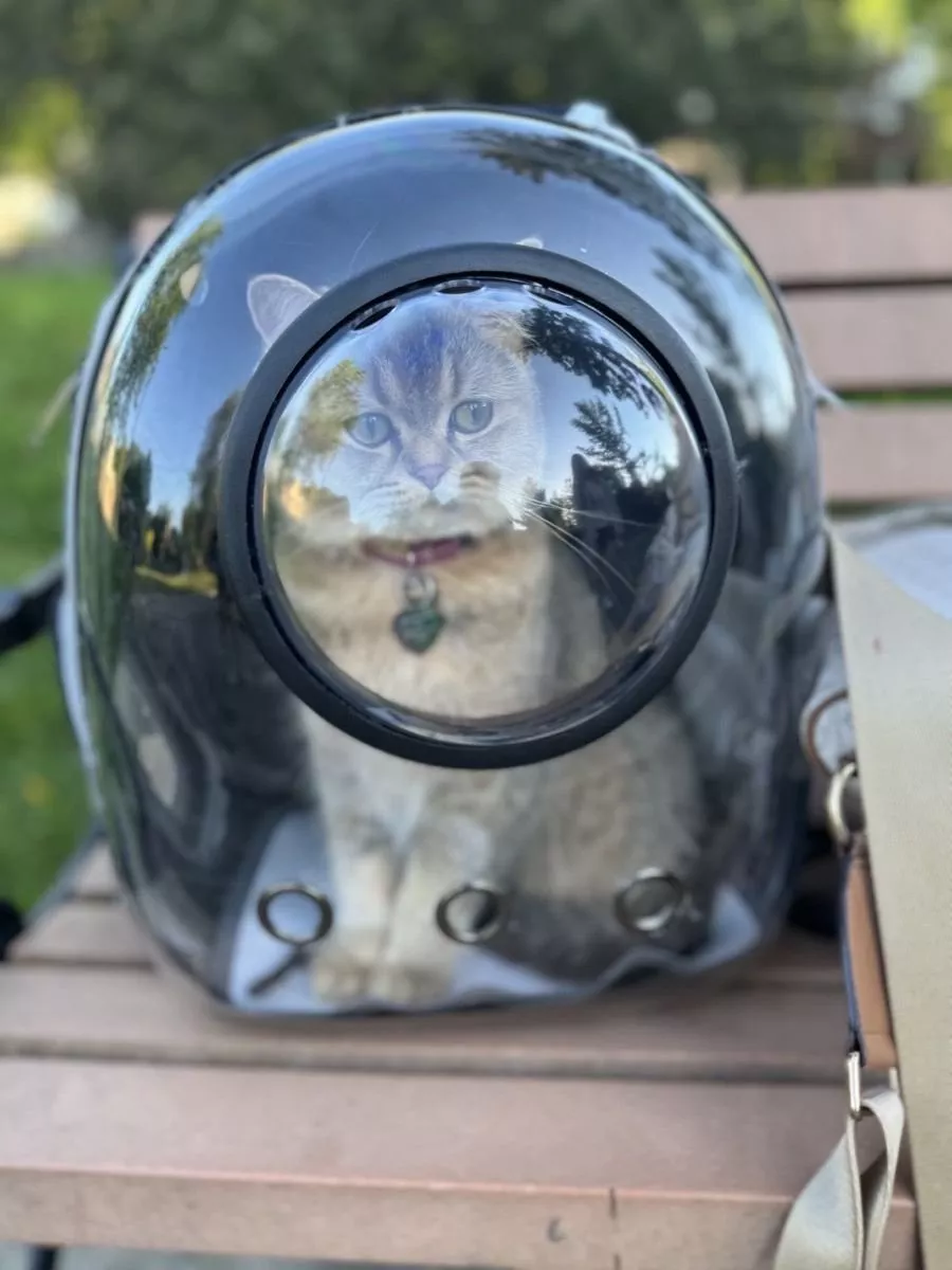 I love this cat backpack! The transparent design allows my cat to see their surroundings, which keeps them entertained and less anxious. The ventilation is top-notch, ensuring my cat stays comfortable and cool. The backpack is very sturdy and well-made, with padded straps that make it easy to carry. It’s stylish and I receive compliments on it all the time. It’s perfect for vet visits, walks, or just taking my cat out for some fresh air. My cat seems to enjoy being inside and feels secure. This backpack has made our outings much more enjoyable. I highly recommend it to any cat owner.