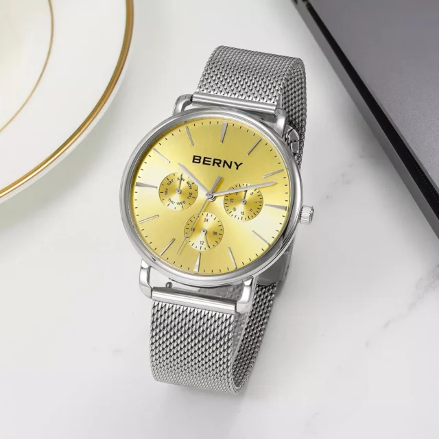 This wristwatch is not just about telling time—it’s about making a statement. Its ergonomic design fits your wrist perfectly, while the quick-release mesh strap allows you to adjust or swap bands effortlessly. The elegant detailing and modern dial design make it versatile enough for both business and casual wear. Lightweight yet durable, slim yet strong, it’s a timepiece built for men who value style, comfort, and precision in every detail.