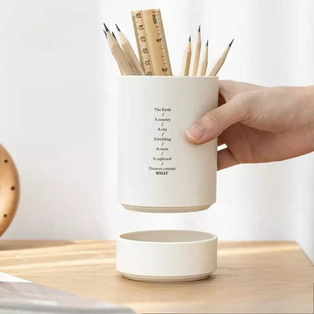 This pen holder isn’t just about holding pens – it’s about enhancing your entire workspace. Its double-layered design offers smart storage without taking up extra space, making it ideal for small desks or minimalist setups. Crafted with durability in mind, it provides a stable and stylish home for pens, pencils, scissors, and more.