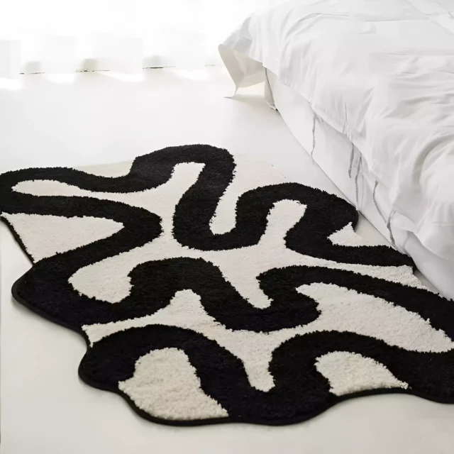 The irregular black-and-white pattern sets it apart from typical rugs, giving your room a gallery-like ambiance. Plus, its combination of softness, safety, and aesthetic appeal makes it a favorite for households that prioritize both function and style. Whether you’re revamping your apartment or looking to add a fresh layer to your home’s personality, this rug delivers visual impact and cozy charm in equal measure.