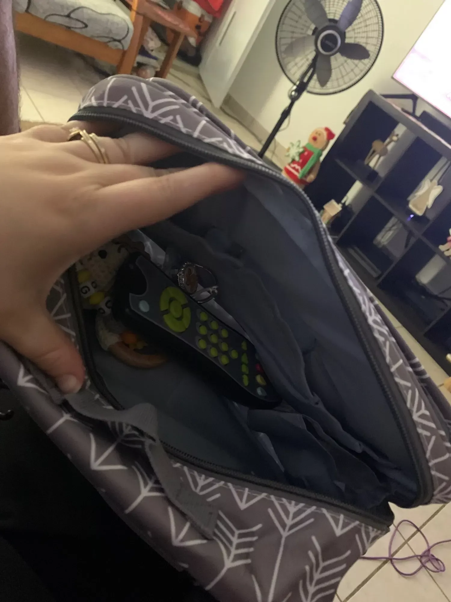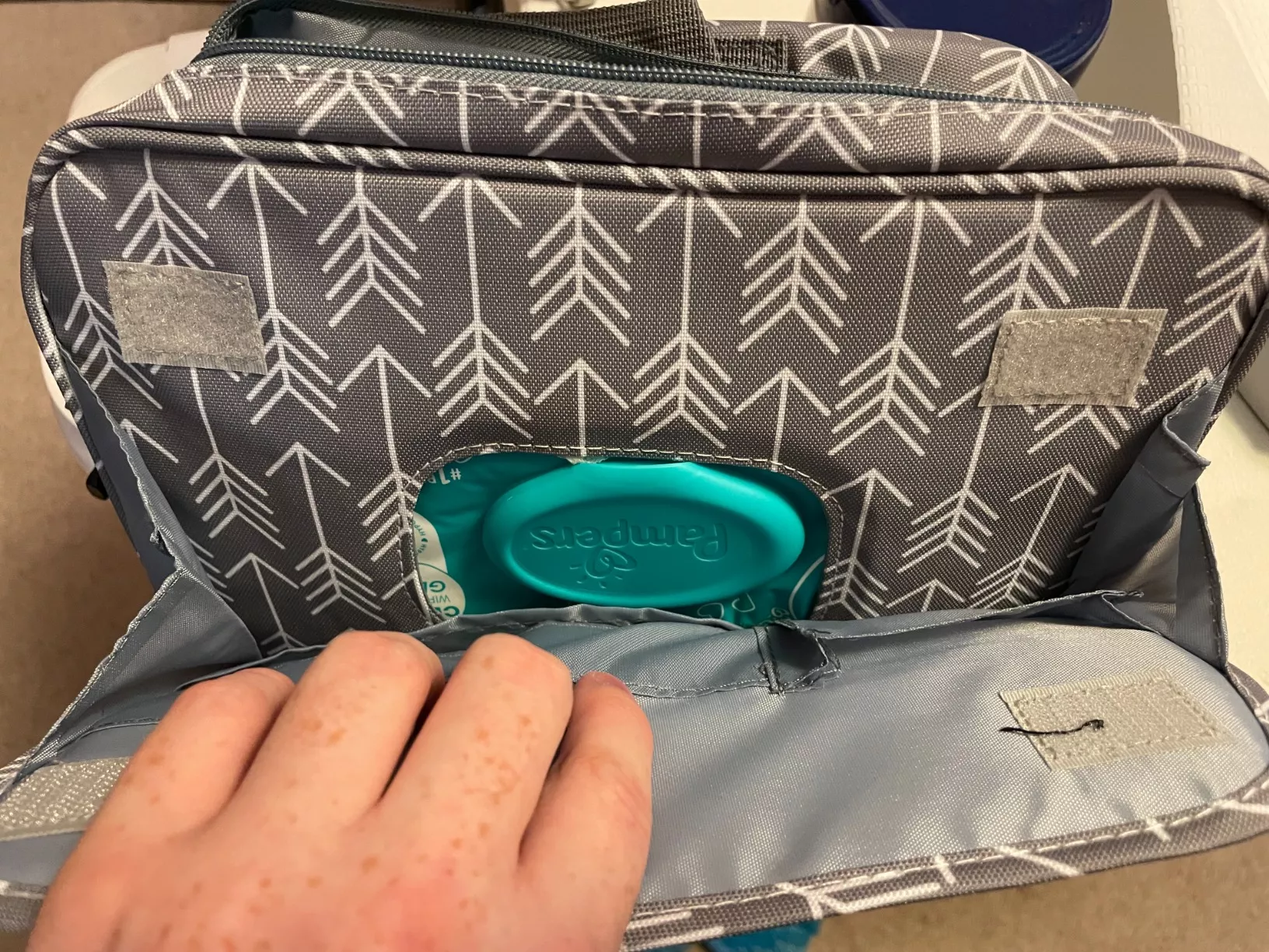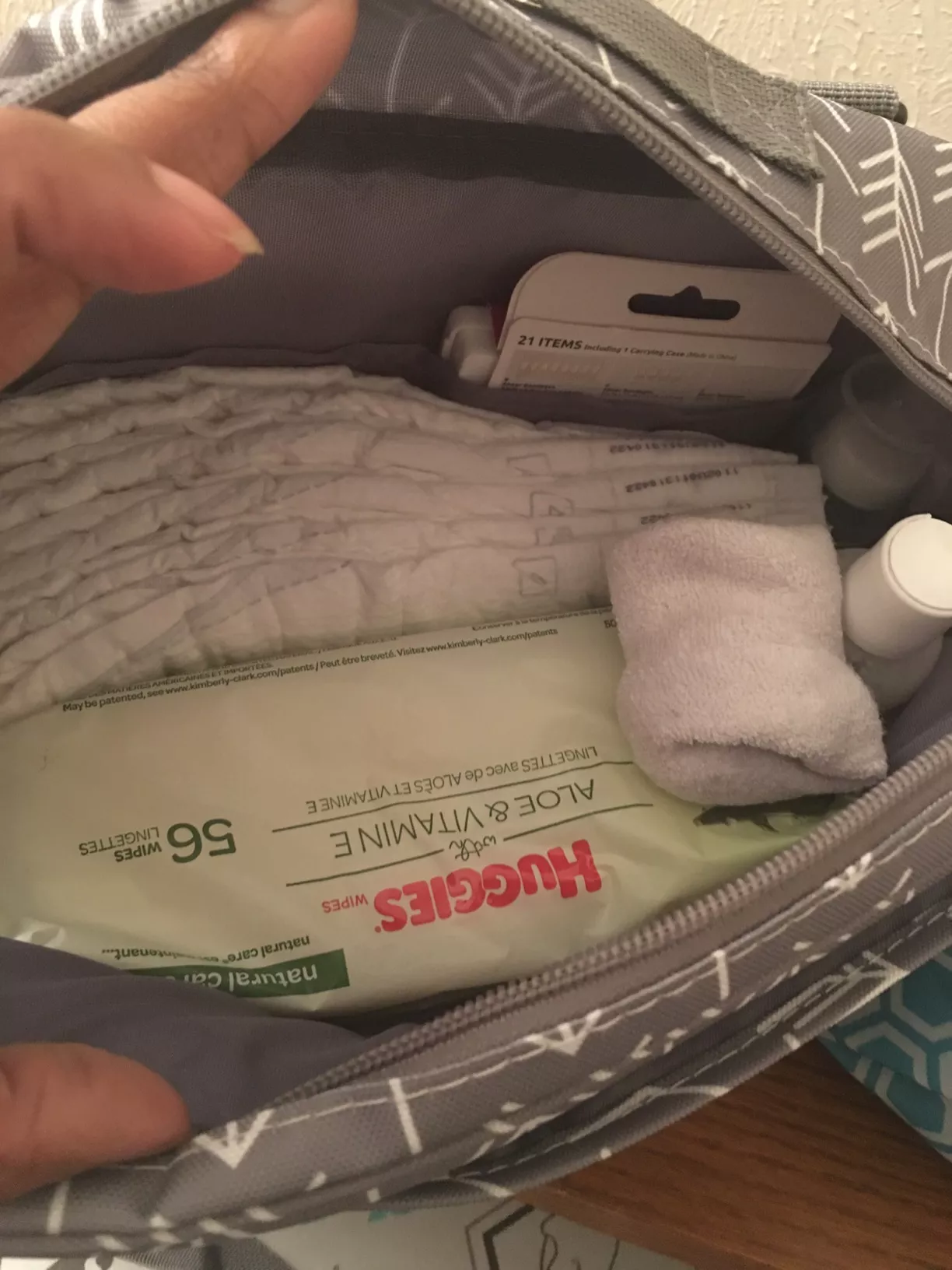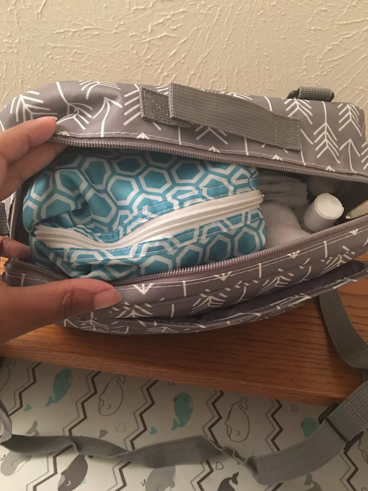 I found the perfect solution for those quick trips out to eat or when running errands. As much as I love my larger diaper bag for its capacity, it becomes a bit of an inconvenience when I only need a few essentials. This compact bag is a godsend, effortlessly holding a whole pack of wipes, 5-7 diapers, a small bottle, a change of clothes, a burp cloth, a bib, some teethers, and a travel formula container. Its design is both thoughtful and efficient, ensuring that everything is easily accessible and well-organized.