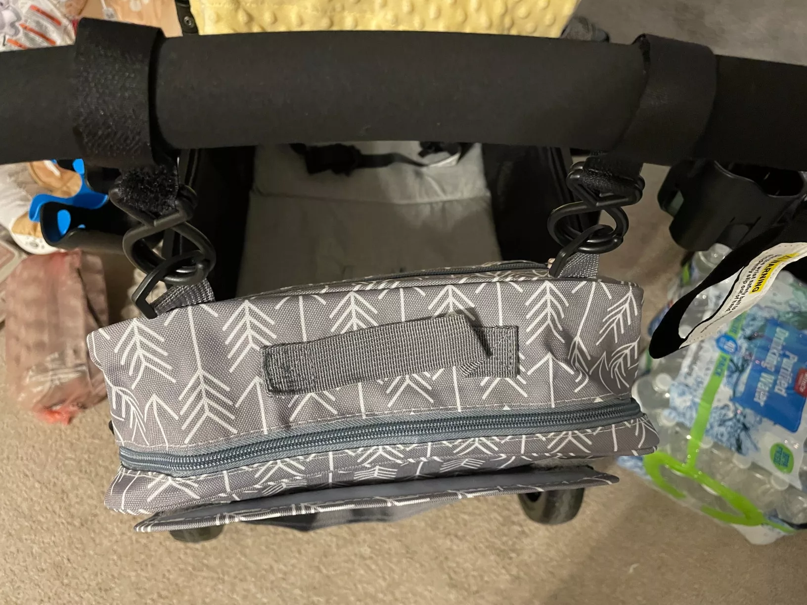 Using it on my travel stroller and it's incredibly convenient. Serves as a purse and baby bag, easy to attach and detach, making my vacation a breeze. So grateful.