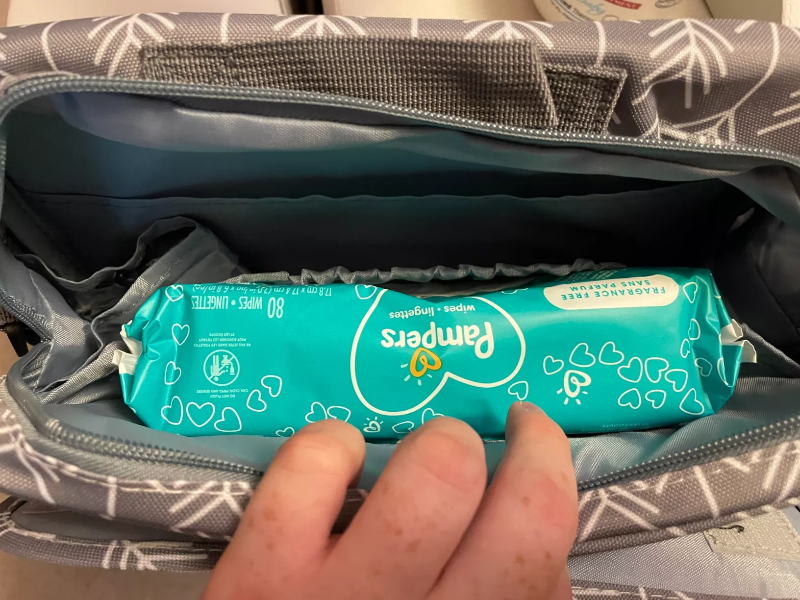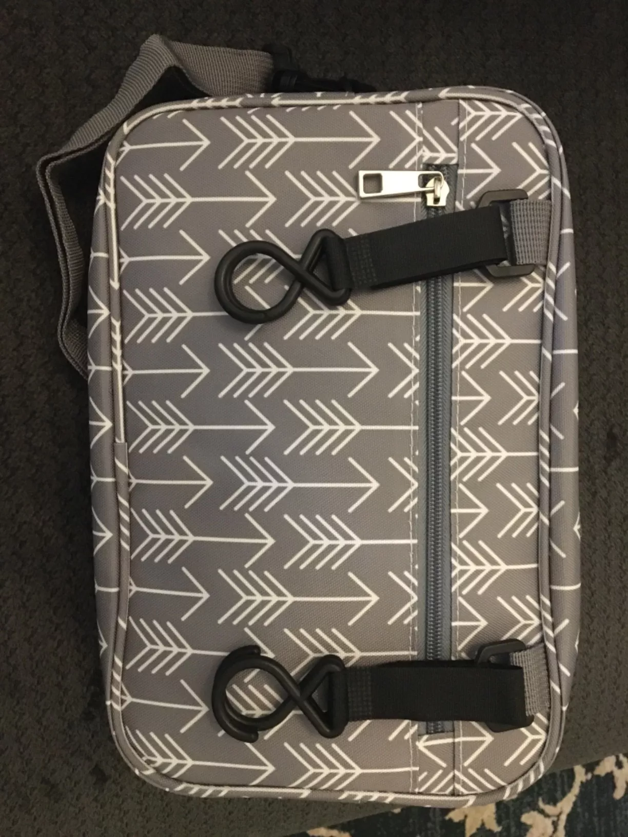 This little bag is awesome for keeping my emergency diaper stash, wipes, and an extra outfit. Super easy to switch from car to stroller without the need to bring the big diaper bag for quick errands.
