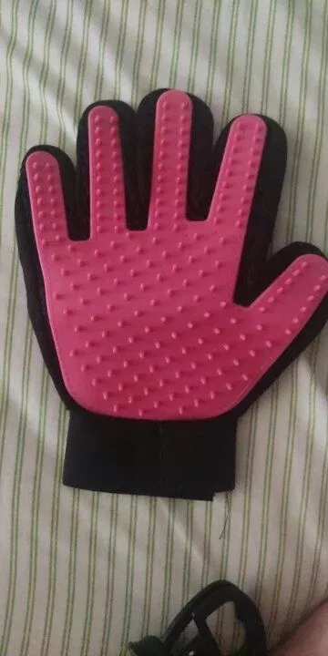 i couldn’t be happier with this grooming glove. it’s made grooming sessions with my pet so much more enjoyable and effective. the glove fits comfortably on my hand, and the soft bristles do an excellent job of removing loose fur and dirt. my pet actually seems to enjoy the grooming process now, often purring contentedly as i use it. it’s also great for giving my pet a gentle massage, which they absolutely love. the glove is easy to clean; the hair peels off effortlessly, and it dries quickly after a rinse. i’ve noticed a significant decrease in the amount of shedding around the house, which is a huge plus. the glove is well-made and durable, showing no signs of wear even after several uses. it’s a great investment for any pet owner looking to make grooming a pleasant experience for both themselves and their pets. highly recommend!