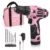 Pink 12V Cordless Drill Driver Set with 3/8″ Keyless Chuck – DIY Home Tool Kit