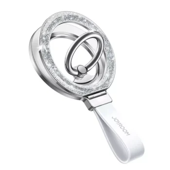 Magnetic Phone Ring Holder with Glitter Design and Silicone Lanyard Grip