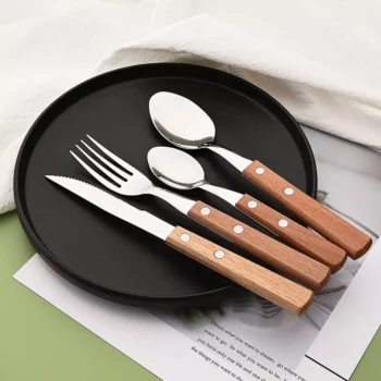 4-Piece Mirror Stainless Steel Cutlery Set with Wooden Handle