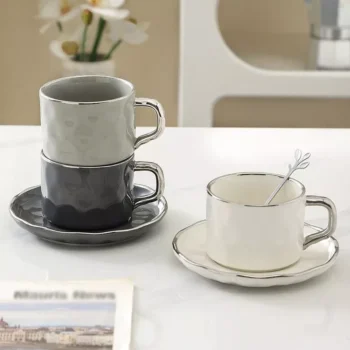 230ml European Style Ceramic Tea Cup and Saucer Set with Spoon