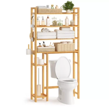 Over-The-Toilet Bamboo Storage Shelf with Adjustable Shelves & Paper Holder