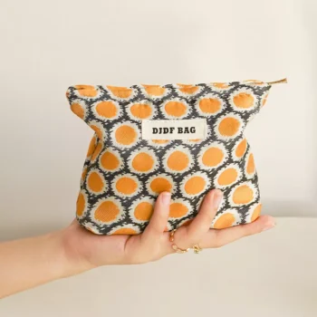 Orange Polka Dot Travel Cosmetic Bag – Small Portable Makeup & Jewelry Pouch