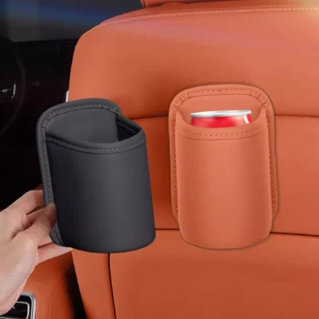 PU Leather Car Door Cup Holder with Clip Design and Side Pocket Organizer