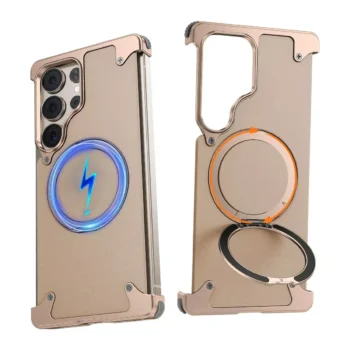 Galaxy S25 Ultra Leather Case with 360° Magnetic Kickstand & Wireless Charging