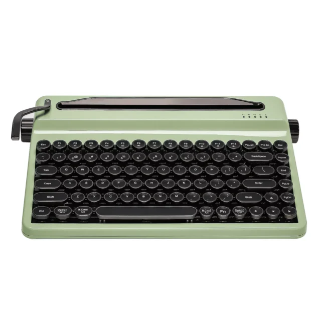 Bring classic charm to your workspace with this retro wireless mechanical keyboard, featuring a nostalgic typewriter design combined with powerful modern functionality. Designed with a 75% layout and 84 round keycaps, this keyboard blends timeless elegance with the needs of today’s multitaskers. Whether you’re a creative professional, avid writer, gamer, or collector, this keyboard delivers a satisfying tactile experience with every keystroke.