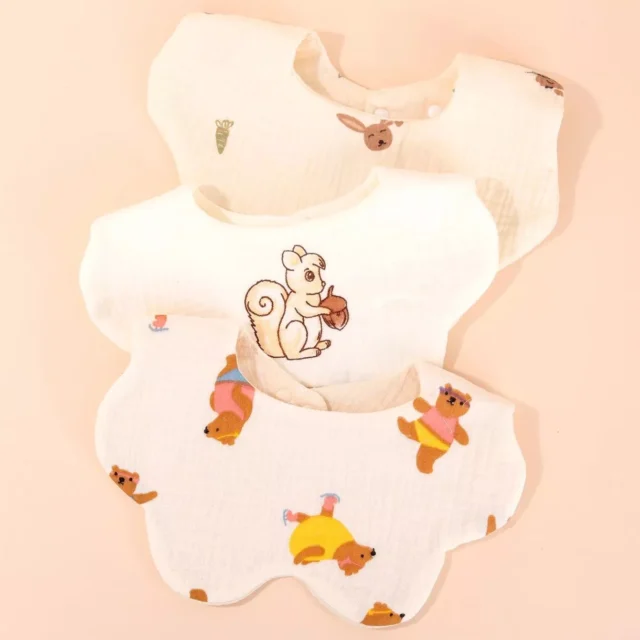 Unlike ordinary bibs, ours combines comfort, function, and charm in one thoughtful package. The unique gauze material stays soft wash after wash, and the waterproof backing ensures messes never soak through. Its lightweight and breathable design means your baby stays comfy—no overheating or irritation. And that handy rice pocket? A total game-changer for messy eaters.