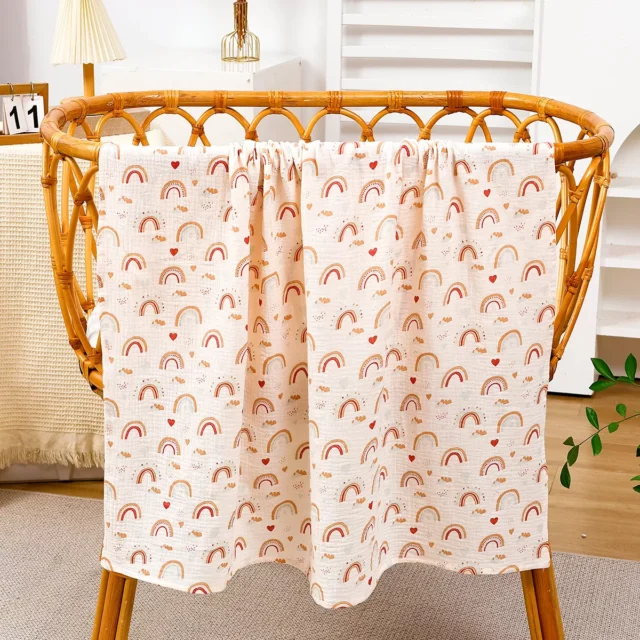 The lightweight and breathable muslin material ensures your baby stays comfortable all year round. Whether it’s a cool winter evening or a warm summer day, this blanket adjusts to the season, providing just the right amount of warmth. The printed patterns add a playful touch, while the unisex design makes it ideal for any baby.