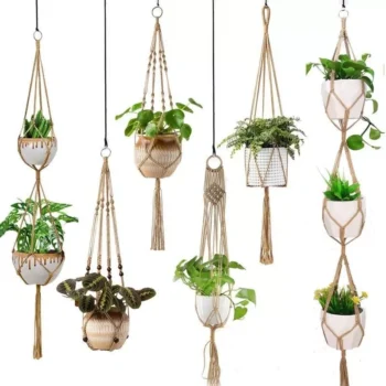 Eco-Friendly Macrame Jute Plant Hanger with Linen Pot Holder and Tray