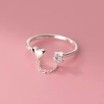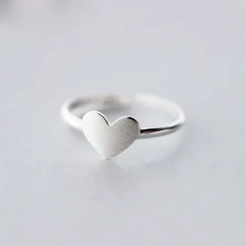 100% Real 925 Sterling Silver Adjustable Heart Rings for Women