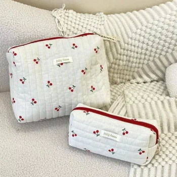 Charming Retro Cherry Quilted Cosmetic and Pencil Case
