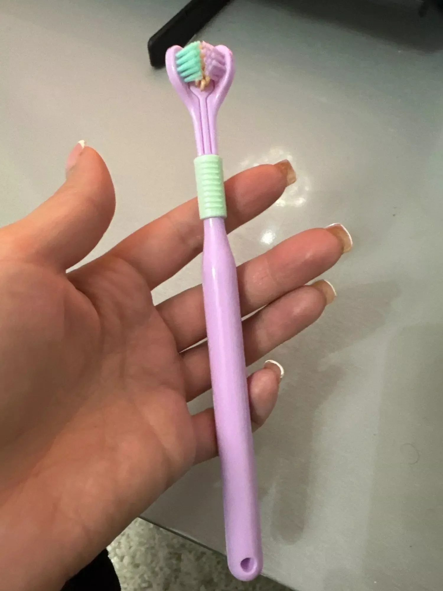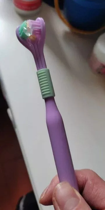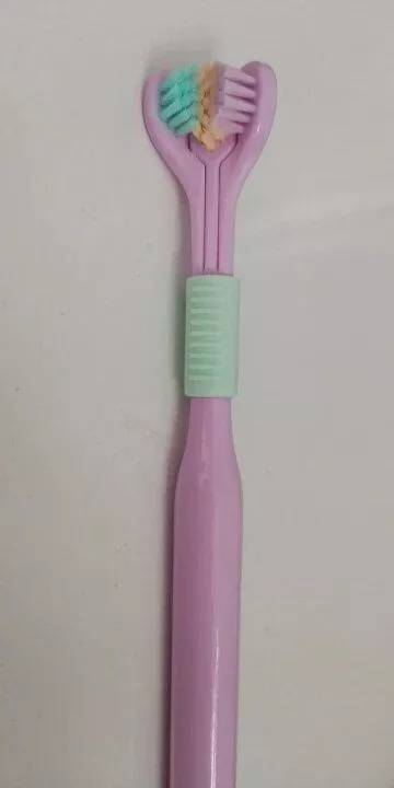 i love this triple-sided toothbrush. it’s a unique design that really works well. the ultra-fine bristles are soft on my gums but do an excellent job cleaning my teeth. it feels like my entire mouth gets a thorough clean every time i use it. the handle is comfortable to hold, and the brush head reaches all the hard-to-reach areas. my teeth feel cleaner, and my breath is fresher. it’s a fantastic toothbrush that i highly recommend to anyone looking to upgrade their oral care routine.